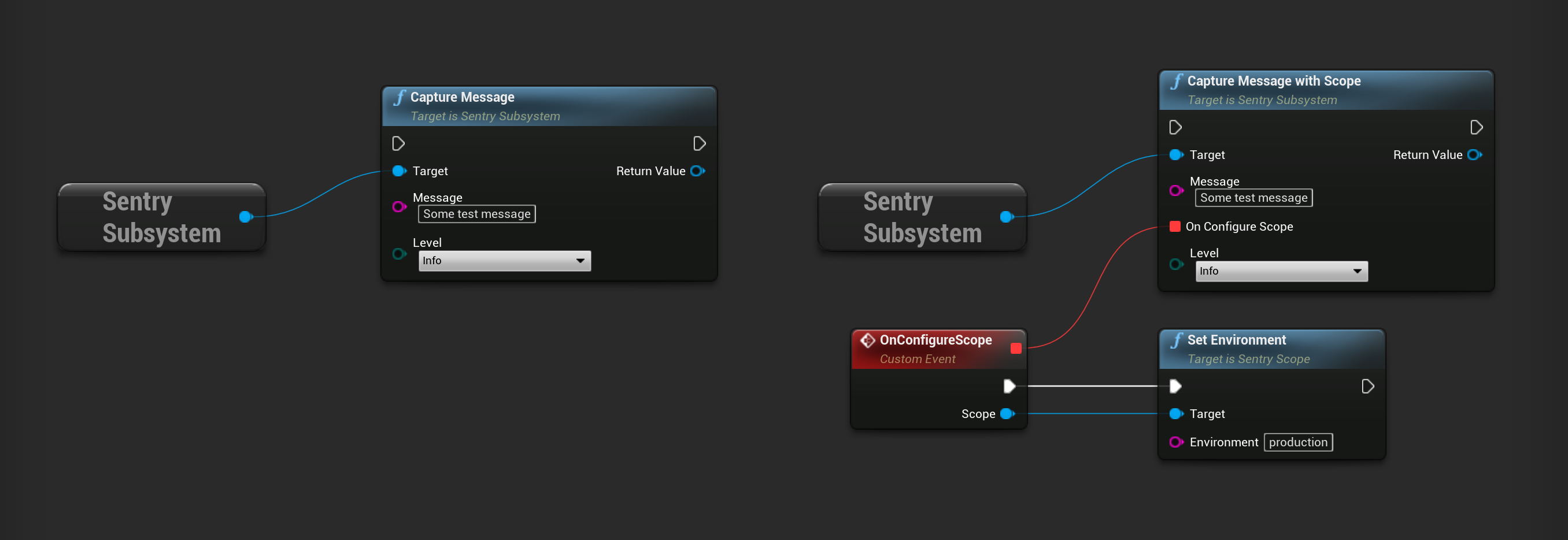 SentrySubsystem->CaptureMessage("Message", ESentryLevel::Info);